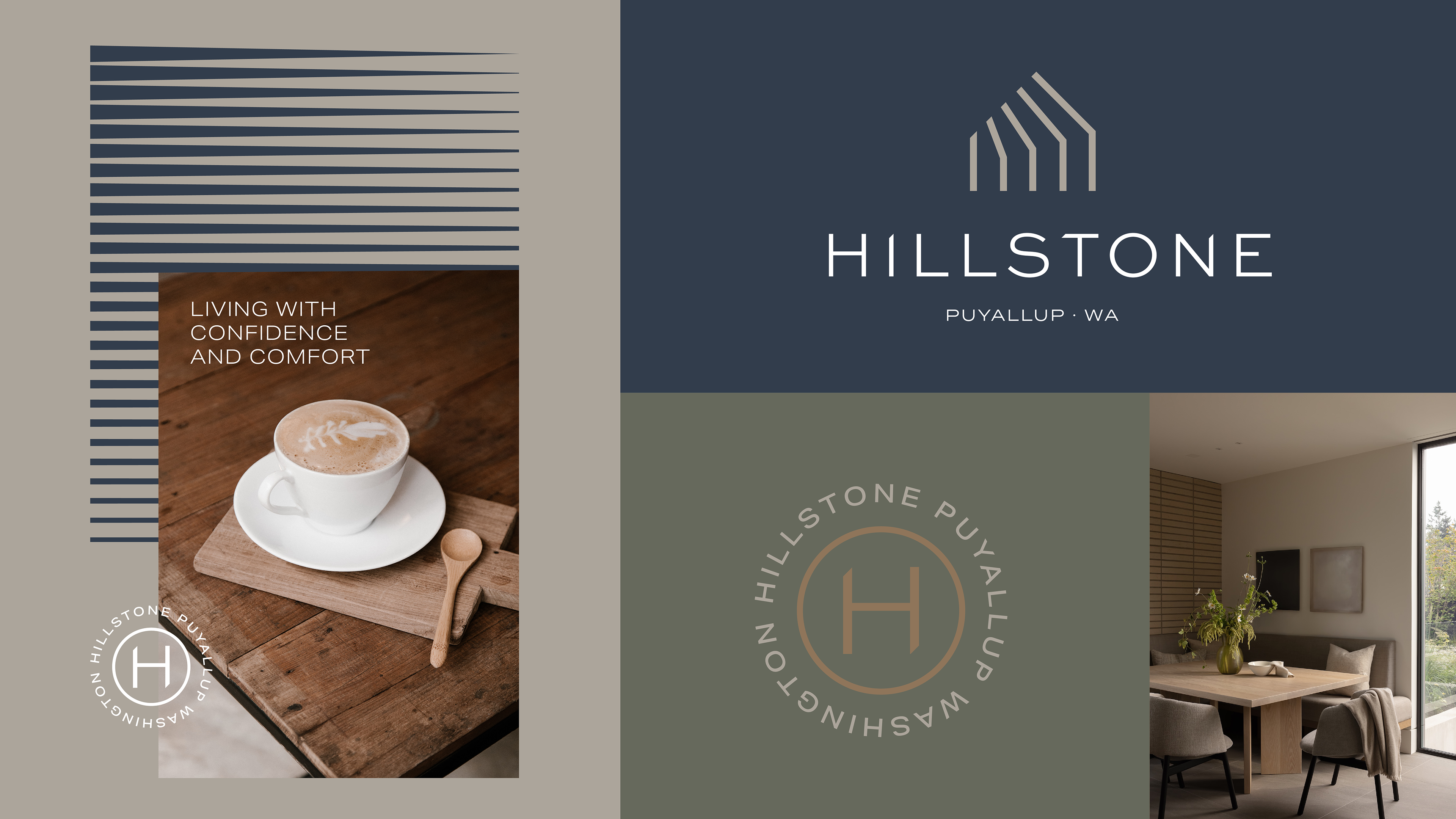 Hillstone is a residential community in Puyallup, Washington designed to embody strength, longevity, and elevated everyday living. The brand identity reflects the architectural character and calm sophistication of the development while grounding the community in its regional context. The name Hillstone conveys strength and lasting quality. “Hill” references the South Hill area of Puyallup, reinforcing a clear connection to place while suggesting stability and elevation. “Stone” communicates durability, craftsmanship, and long-term value. Together, the name feels modern, grounded, and confident aligning with the community’s best-in-class positioning while remaining clean, simple, and scalable for long-term brand recognition.